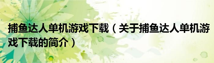 本文關于捕魚達人單機游戲下載的簡介就講解完畢,希望對大家有所幫助。