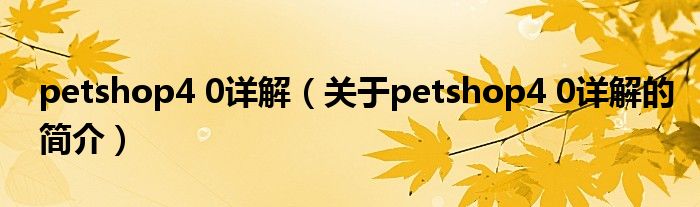 大家好,petshop4 0詳解,關于petshop4 0詳解的簡介很多人還不知道,現在讓我們一起來看看吧!