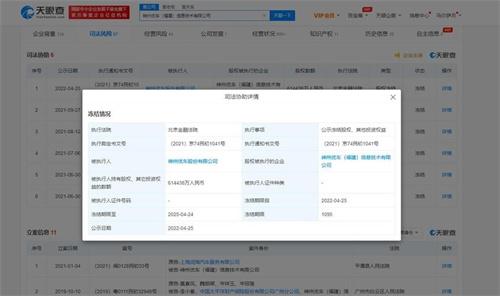 根據(jù)查詢顯示的信息,神州優(yōu)車福建信息技術(shù)有限公司手持61億股權(quán)被凍結(jié),凍結(jié)日期是從2023年7月20日到2026年7月19日,由北京金融法院執(zhí)行。