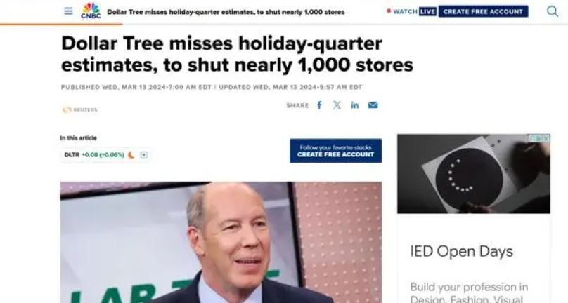 今年五一假日期間,兩家連鎖商超正在艱難渡劫,來自美國的折扣店巨頭99 Cents Only宣布破產并關停旗下的371家連鎖店,解雇1.4萬名員工。另外一家商超dollar Tree也于近期宣布公司3個月虧損120億,將關停旗下大約1000家超市。