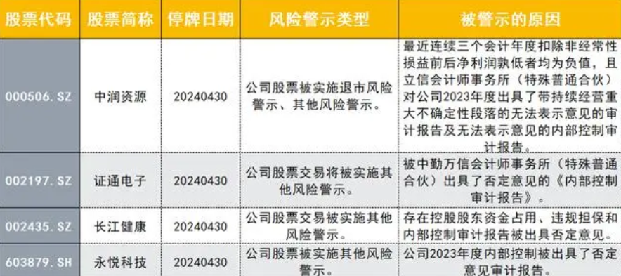 2.經過梳理這些公司的問題發現,上述公司被實施其他風險警示的個股大多都存在內控問題,比如超華科技、高鴻股份、江蘇陽光和景峰醫藥等都存在內控失效的問題。