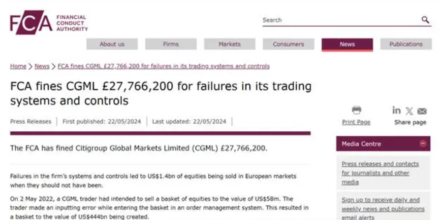 2.此次花旗集團(tuán)的系統(tǒng)違規(guī)行為是導(dǎo)致受到制裁的主要原因之一,在此前的一項(xiàng)違規(guī)事件中,花旗集團(tuán)曾導(dǎo)致歐洲的股市突然出現(xiàn)了持續(xù)幾分鐘的大幅度下跌情況,后續(xù)FCA指出,花旗集團(tuán)的系統(tǒng)設(shè)計(jì)存在缺陷,導(dǎo)致實(shí)施監(jiān)管機(jī)制無效。