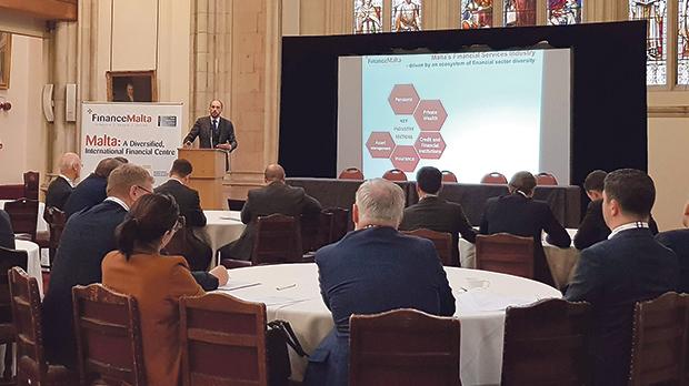 馬耳他對英國金融服務業的提議于上個月在倫敦的Guildhall由FinanceMalta和金融服務業從業者提交給行業專業人士。