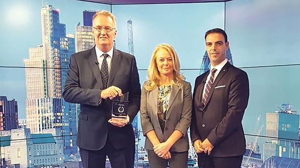 BNF銀行首席執行官Michael Collis在商業發展部負責人Melvin Pellicano的陪同下,在倫敦參加倫敦證券交易所頒獎典禮。