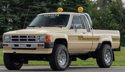 信不信由你,這輛特定的卡車在其里程表上顯示 159,308 英里。我們這么說不是因?yàn)樵谶@個(gè)時(shí)代的豐田很少看到這樣的里程,而是因?yàn)樗浅R粔m不染。側(cè)面的工廠條紋看起來從未在小徑上擦過樹枝。鍍鉻保險(xiǎn)杠和防滾架一塵不染。燃油噴射的22R-E四缸發(fā)動機(jī)看起來和內(nèi)部一樣干凈,順便說一下,看起來是全新的。拍賣沒有提到是否進(jìn)行了任何修復(fù)工作,或者這只是一輛保存完好的原始卡車。不管怎樣,它絕對是一個(gè)守門員。