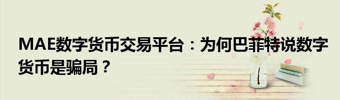 從數字貨幣的角度而言,我幾乎可以肯定地說,他們將會迎來一個非常糟糕的結局,”伯克希爾董事長兼首席執行官巴菲特說。但是在巴菲特說這句話的同時,我們看到是的比特幣等相關的數字貨幣迎來了一大波上漲的熱潮,市場的行情與巴菲特形成了強烈的對比,難道巴菲特這一次又是胡說八道?還是沒有理解數字貨幣的真實價值在哪里?今天MAE數字貨幣交易平臺就給大家分下為什么巴菲特會這樣判斷。