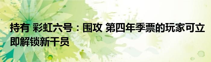 持有《彩虹六號:圍攻》第四年季票的玩家可立即解鎖新干員,而其他玩家則可于9月18日使用聲望點數來解鎖這些干員。其他賽季新內容對所有玩家免費開放,其中也包括新版的“運河”地圖。