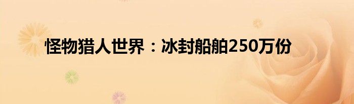 2019年9月13日Monster Hunter World:Iceborne已經在全球發行了超過250萬份。