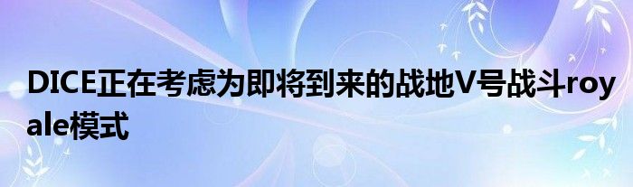 EA DICE正在測試潛在的戰(zhàn)斗royale模式為他們即將到來的標題戰(zhàn)場V.