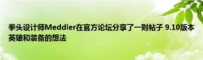 拳頭設計師Meddler在官方論壇分享了一則帖子,簡短概括了他對9.10版本一些英雄和裝備的想法,以及一段對劍圣很有趣的評價。