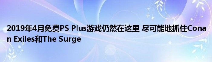 不要再把它關掉 - 這是你在下個月的選擇上線之前抓住2019年4月免費PS Plus游戲的最后機會。4月的兩款PlayStation Plus選擇PlayStation Plus是Conan Exiles和The Surge;第一個讓你在低幻想世界中開辟出自己的生存之路,而后者則是靈魂粉絲的科幻款待。他們比三月的現代戰爭重新制作和見證人更深刻,但仍然有很多樂趣。2019年5月的免費PS Plus游戲將在5月7日接管,因此請確保在用新的PS4游戲替換之前先抓住Conan Exiles和The Surge。