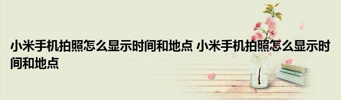 大家好,小詹來為大家解答以上問題。小米手機(jī)拍照怎么顯示時(shí)間和地點(diǎn),小米手機(jī)拍照怎么顯示時(shí)間和地點(diǎn)很多人還不知道,現(xiàn)在讓我們一起來看看吧!