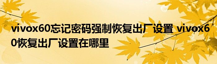 大家好,小詹來為大家解答以上問題。vivox60忘記密碼強制恢復出廠設置,vivox60恢復出廠設置在哪里很多人還不知道,現在讓我們一起來看看吧!