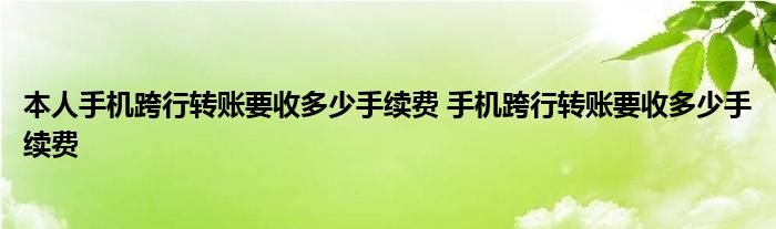 大家好,小詹來為大家解答以上問題。本人手機跨行轉賬要收多少手續費,手機跨行轉賬要收多少手續費很多人還不知道,現在讓我們一起來看看吧!