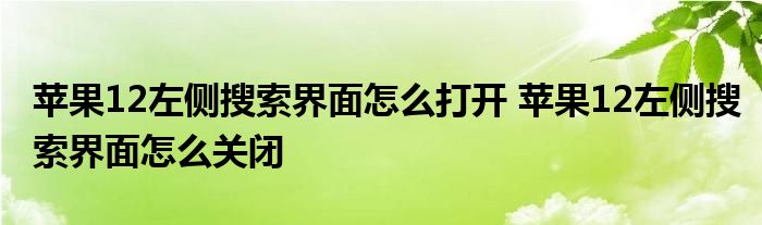 大家好,小詹來為大家解答以上問題。蘋果12左側(cè)搜索界面怎么打開,蘋果12左側(cè)搜索界面怎么關(guān)閉很多人還不知道,現(xiàn)在讓我們一起來看看吧!
