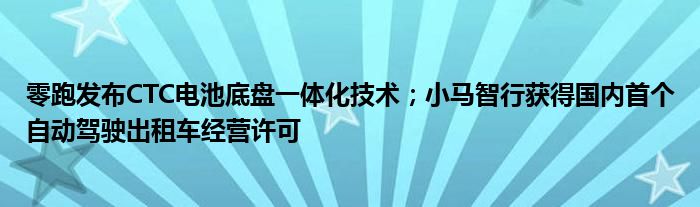 大家好,小科來為大家解答以上問題。零跑發布CTC電池底盤一體化技術;小馬智行獲得國內首個自動駕駛出租車經營許可這個很多人還不知道,現在讓我們一起來看看吧!