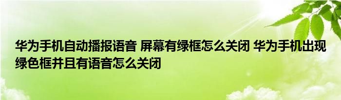 大家好,小詹來為大家解答以上問題。華為手機(jī)自動(dòng)播報(bào)語(yǔ)音 屏幕有綠框怎么關(guān)閉,華為手機(jī)出現(xiàn)綠色框并且有語(yǔ)音怎么關(guān)閉很多人還不知道,現(xiàn)在讓我們一起來看看吧!