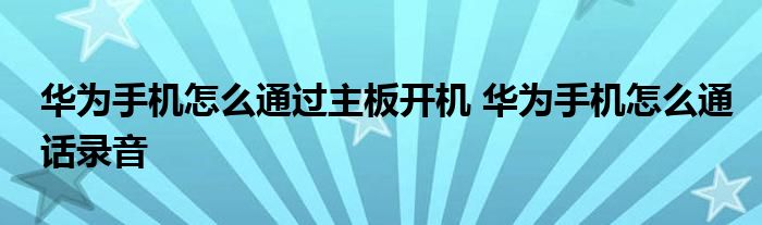 大家好,小詹來為大家解答以上問題。華為手機怎么通過主板開機,華為手機怎么通話錄音很多人還不知道,現在讓我們一起來看看吧!