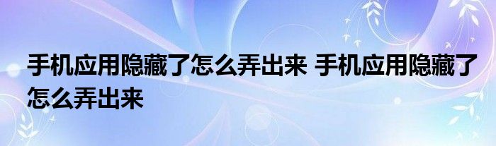 大家好,小詹來為大家解答以上問題。手機應用隱藏了怎么弄出來,手機應用隱藏了怎么弄出來很多人還不知道,現在讓我們一起來看看吧!