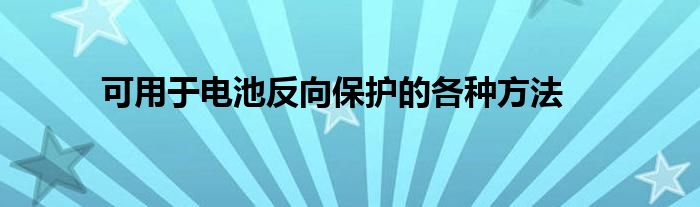 大家好,小科來為大家解答以上問題。可用于電池反向保護(hù)的各種方法這個(gè)很多人還不知道,現(xiàn)在讓我們一起來看看吧!