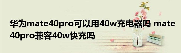 大家好,小詹來(lái)為大家解答以上問(wèn)題。華為mate40pro可以用40w充電器嗎,mate40pro兼容40w快充嗎很多人還不知道,現(xiàn)在讓我們一起來(lái)看看吧!