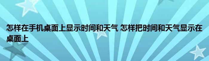 大家好,小詹來為大家解答以上問題。怎樣在手機桌面上顯示時間和天氣,怎樣把時間和天氣顯示在桌面上很多人還不知道,現在讓我們一起來看看吧!
