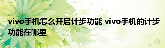 大家好,小詹來為大家解答以上問題。vivo手機怎么開啟計步功能,vivo手機的計步功能在哪里很多人還不知道,現在讓我們一起來看看吧!
