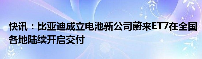大家好,小科來為大家解答以上問題。快訊:比亞迪成立電池新公司 蔚來ET7在全國各地陸續開啟交付這個很多人還不知道,現在讓我們一起來看看吧!