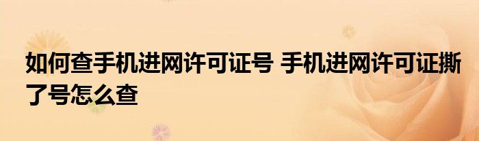 大家好,小詹來為大家解答以上問題。如何查手機進網許可證號,手機進網許可證撕了號怎么查很多人還不知道,現在讓我們一起來看看吧!