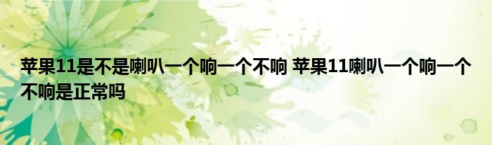大家好,小詹來為大家解答以上問題。蘋果11是不是喇叭一個響一個不響,蘋果11喇叭一個響一個不響是正常嗎很多人還不知道,現在讓我們一起來看看吧!