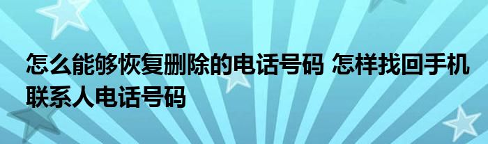 大家好,小詹來為大家解答以上問題。怎么能夠恢復刪除的電話號碼,怎樣找回手機聯系人電話號碼很多人還不知道,現在讓我們一起來看看吧!