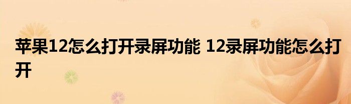 大家好,小詹來為大家解答以上問題。蘋果12怎么打開錄屏功能,12錄屏功能怎么打開很多人還不知道,現在讓我們一起來看看吧!