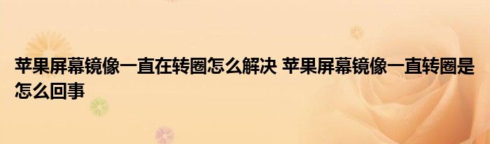 大家好,小詹來為大家解答以上問題。蘋果屏幕鏡像一直在轉(zhuǎn)圈怎么解決,蘋果屏幕鏡像一直轉(zhuǎn)圈是怎么回事很多人還不知道,現(xiàn)在讓我們一起來看看吧!
