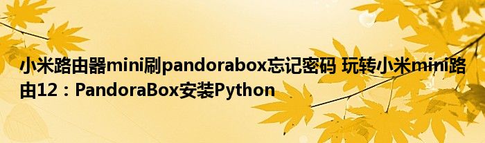 大家好,小柏來為大家解答以上問題。小米路由器mini刷pandorabox忘記密碼,玩轉小米mini路由12:PandoraBox安裝Python很多人還不知道,現在讓我們一起來看看吧!