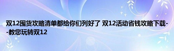 大家好,小柏來為大家解答以上問題。雙12囤貨攻略清單都給你們列好了,雙12活動省錢攻略下載--教您玩轉雙12很多人還不知道,現在讓我們一起來看看吧!