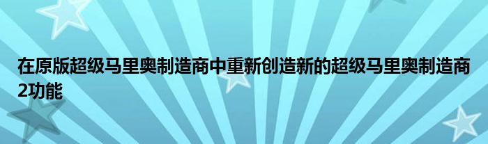 當然,在超級馬里奧制造商2中,這些新功能很可能更容易實現,并且更多地運用玩家如何從舊游戲中記住它們。但是,如果你不能等待續集,你可以在等待時嘗試制作自己的超級馬里奧制作2。