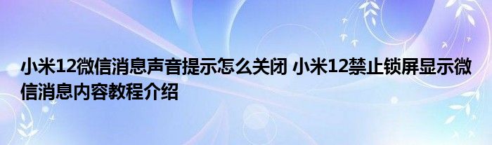 大家好,小柏來為大家解答以上問題。小米12微信消息聲音提示怎么關閉,小米12禁止鎖屏顯示微信消息內容教程介紹很多人還不知道,現在讓我們一起來看看吧!
