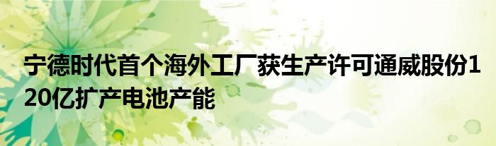大家好,小科來為大家解答以上問題。寧德時(shí)代首個(gè)海外工廠獲生產(chǎn)許可 通威股份120億擴(kuò)產(chǎn)電池產(chǎn)能這個(gè)很多人還不知道,現(xiàn)在讓我們一起來看看吧!