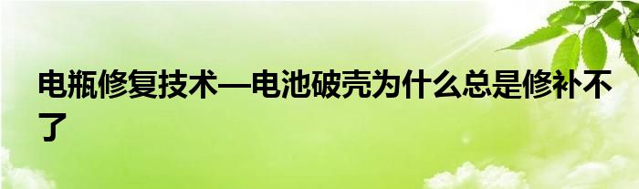 大家好,小科來為大家解答以上問題。電瓶修復(fù)技術(shù)—電池破殼為什么總是修補(bǔ)不了這個(gè)很多人還不知道,現(xiàn)在讓我們一起來看看吧!
