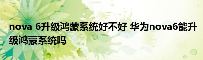 大家好,小詹來為大家解答以上問題。nova 6升級鴻蒙系統好不好,華為nova6能升級鴻蒙系統嗎很多人還不知道,現在讓我們一起來看看吧!
