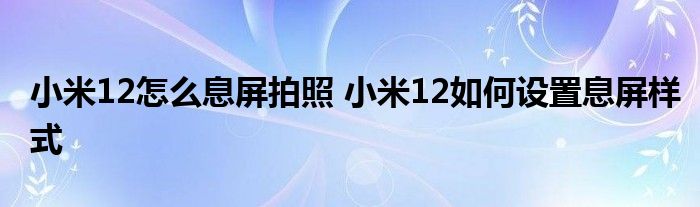 大家好,小柏來為大家解答以上問題。小米12怎么息屏拍照小米12如何設置息屏樣式很多人還不知道,現在讓我們一起來看看吧!