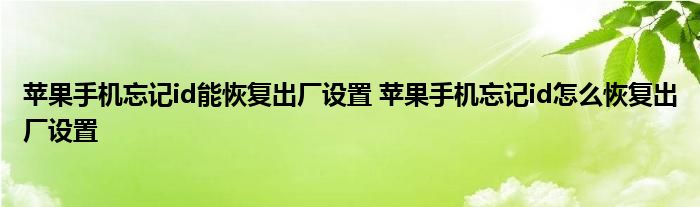 大家好,小詹來為大家解答以上問題。蘋果手機忘記id能恢復(fù)出廠設(shè)置,蘋果手機忘記id怎么恢復(fù)出廠設(shè)置很多人還不知道,現(xiàn)在讓我們一起來看看吧!