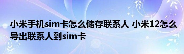 大家好,小柏來為大家解答以上問題。小米手機sim卡怎么儲存聯系人,小米12怎么導出聯系人到sim卡很多人還不知道,現在讓我們一起來看看吧!