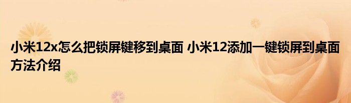 大家好,小柏來為大家解答以上問題。小米12x怎么把鎖屏鍵移到桌面,小米12添加一鍵鎖屏到桌面方法介紹很多人還不知道,現在讓我們一起來看看吧!