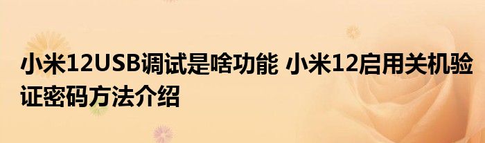 大家好,小柏來為大家解答以上問題。小米12USB調(diào)試是啥功能,小米12啟用關(guān)機驗證密碼方法介紹很多人還不知道,現(xiàn)在讓我們一起來看看吧!