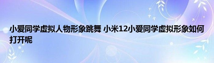 大家好,小柏來為大家解答以上問題。小愛同學(xué)虛擬人物形象跳舞,小米12小愛同學(xué)虛擬形象如何打開呢很多人還不知道,現(xiàn)在讓我們一起來看看吧!
