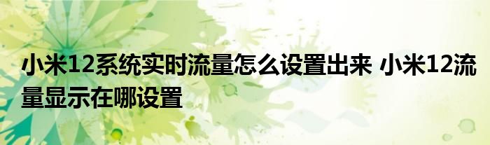 大家好,小柏來為大家解答以上問題。小米12系統(tǒng)實時流量怎么設置出來,小米12流量顯示在哪設置很多人還不知道,現(xiàn)在讓我們一起來看看吧!
