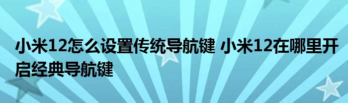 大家好,小柏來為大家解答以上問題。小米12怎么設置傳統導航鍵,小米12在哪里開啟經典導航鍵很多人還不知道,現在讓我們一起來看看吧!
