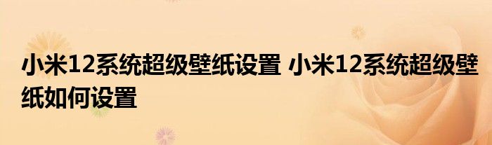 大家好,小柏來為大家解答以上問題。小米12系統超級壁紙設置,小米12系統超級壁紙如何設置很多人還不知道,現在讓我們一起來看看吧!
