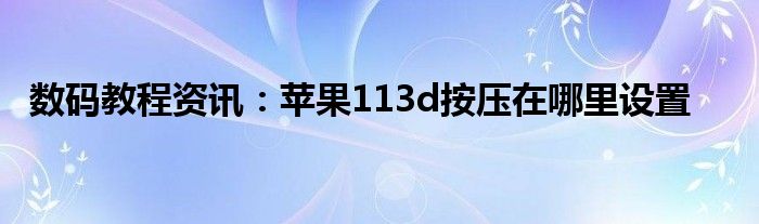 現(xiàn)在各種各樣的數(shù)碼設備在我們的生活當中幾乎可以說是無處不在,平時我們使用的手機,IP,電腦等等這些都屬于數(shù)碼設備,那么這些數(shù)碼設備當中會存在著很多的功能,當然在我們使用的過程當中自然也會出現(xiàn)說各種的問題,那么我們?nèi)绾尾拍苋ソ鉀Q這些問題以及使用好這些功能呢?這個時候就需要我們?nèi)チ私膺@些功能及問題的解決方法,今天小編就來給大家分享下,關于蘋果113d按壓在哪里設置方面的問題及功能的詳細內(nèi)容,希望下面小編為大家分享的內(nèi)容對大家來說有一定的幫助哦。蘋果113d按壓在哪里設置?